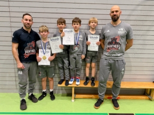 Unsere Schüler nahmen am Sonntag beim bezirksoffenen Turnier in Lauffen teil und errangen folgende Platzierungen: 1. Platz Nazar Konovol und Julius Fritz, 2. Platz Maximilian Knapp und Lennox Böpple, 3. Platz Jalon Fray, 5. Platz Noah Koch und Liam Stäbler, 6. Platz Marco Malovolti. Herzlichen Glückwunsch an alle Ringer und Trainer!